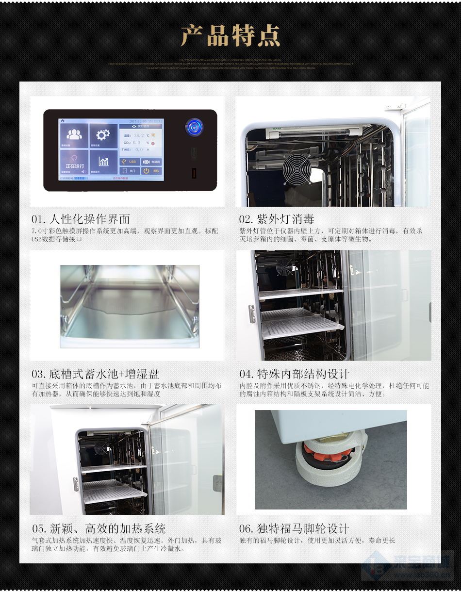 ● 水套式二氧化碳培養箱標配HEPA過濾器,針對直徑大于等于0.30.3μm的顆粒,過濾效率達99.95%,可選配紫外燈。
