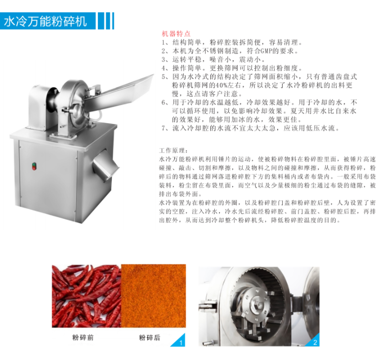 WN-200水冷萬能粉碎機附帶水冷裝置,結構簡單,容易清理,不銹鋼材質