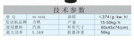HK-860Q汽油磨粉機通過汽油發動機傳動,適合流動式磨粉作業,不銹鋼材質,,提高了機器零配件加工工藝。
