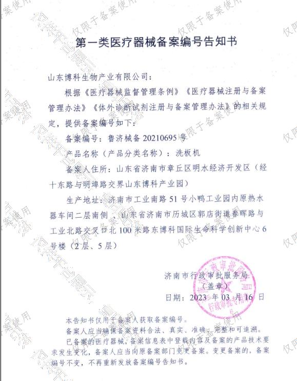 所屬類目:I類 22-15-01 洗板機批準文號:魯濟械備20180671號