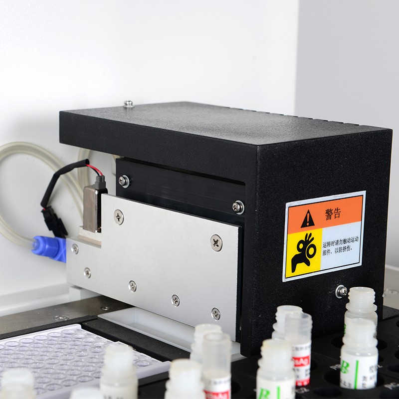 一、全自動(dòng)完成ELISA實(shí)驗(yàn),包括標(biāo)本分配、試劑加注、振蕩、孵育、洗板、讀數(shù)。