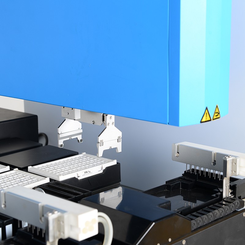 十、機(jī)械臂:配置二個(gè)智能機(jī)械臂,一個(gè)用于標(biāo)本和試劑分配,一個(gè)用于抓板。