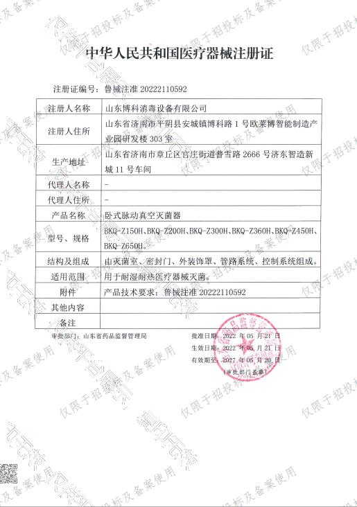 所屬類目:二類11-01-03壓力蒸汽滅菌器