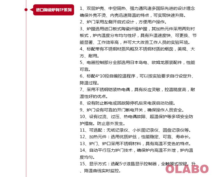 1、G系列爐膛-選用傳統耐火材料制造,具有應用范圍廣、性價比高等特點。 2、爐門結構采用全方位密封技術。具有開啟方便、安全,并確保爐內高溫氣體不外漏,達到節能、環保的目的。爐體采用一體式爐體設計,先進合理、使用方便。 3、安全保障措施:本系列電阻爐設有過壓、過流、爐體表面過熱保護保護開關。另設防止供電線路停電恢復后,在無人值守情況下電阻爐繼續加熱功能;及開啟爐門后,爐膛停止供電裝置。 4、新一代PID智能控溫儀具有控溫精度高、操作簡單、易學的特點。